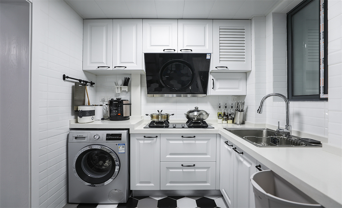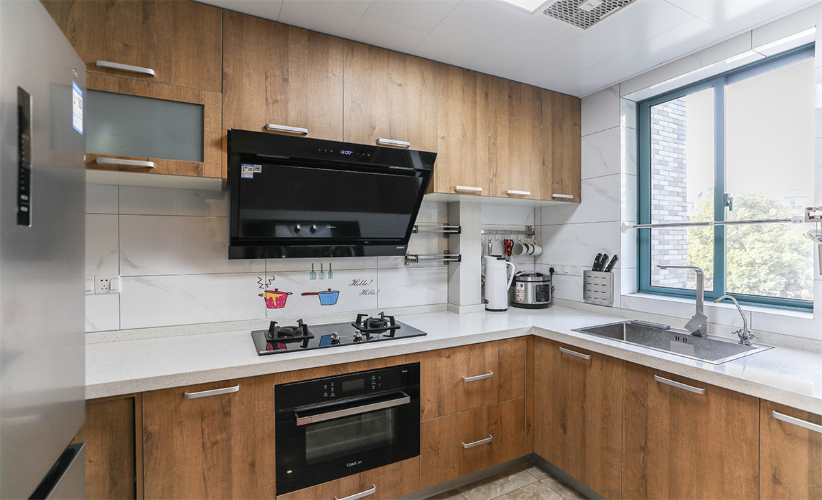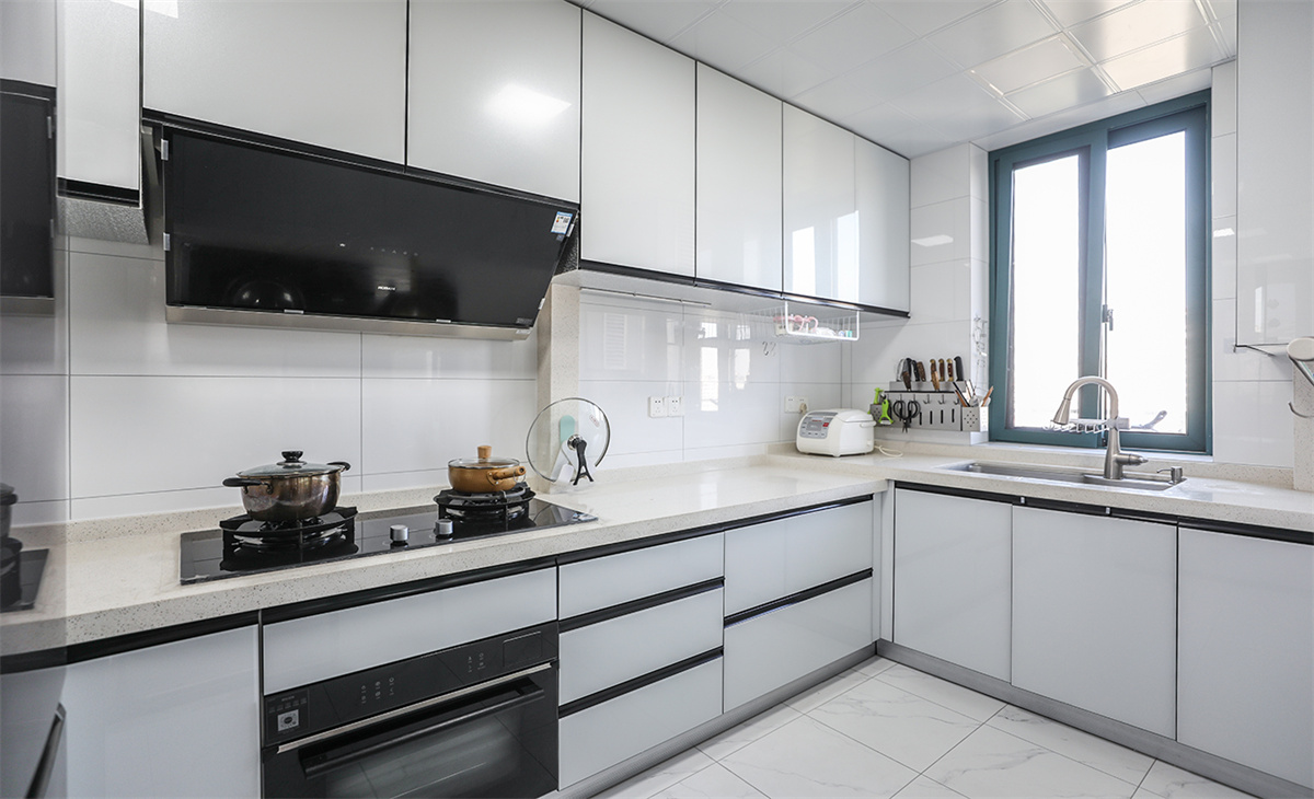 1、墻面:最好用瓷磚貼到頂,以便于擦洗。有些住宅,廚房的墻磚只貼到1.8米高,這是不夠的,需要補貼到頂。