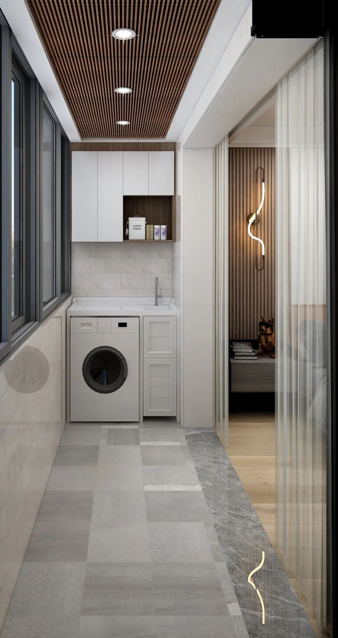 要是沒有陽臺的戶型,或者晾衣需求比較大的家庭,可以試試隱形晾衣繩,不用的時候,它悄悄呆在一個小角落里“隱形”起來完全不占用空間。