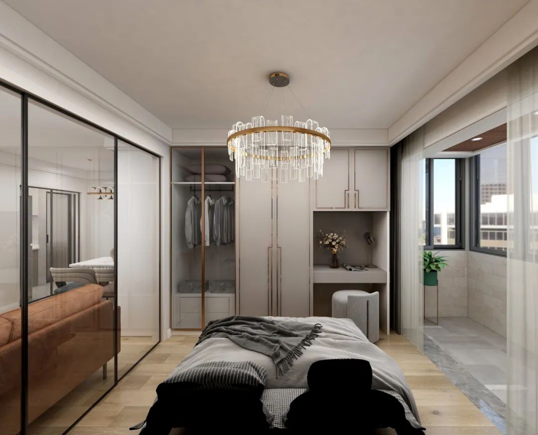 ▲臥室空間不會因為隔斷而被擋住視線,透明的玻璃隔斷設計使得整個臥室空間更加通透,白天即使沒開燈,也很明亮。