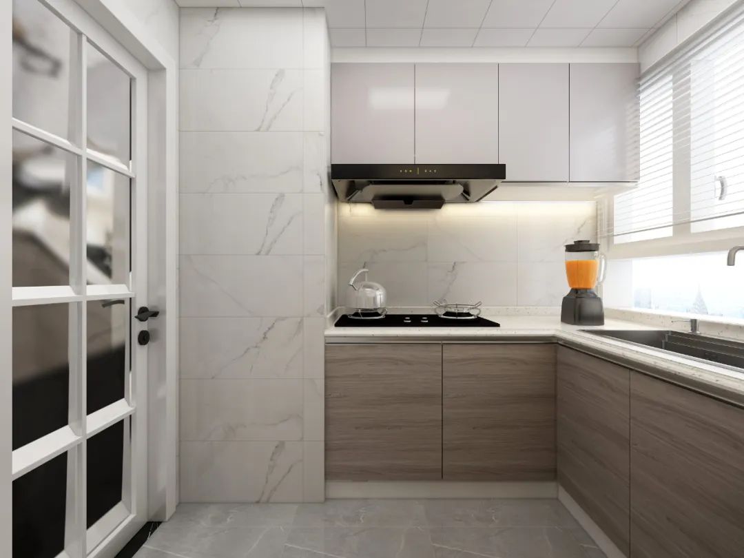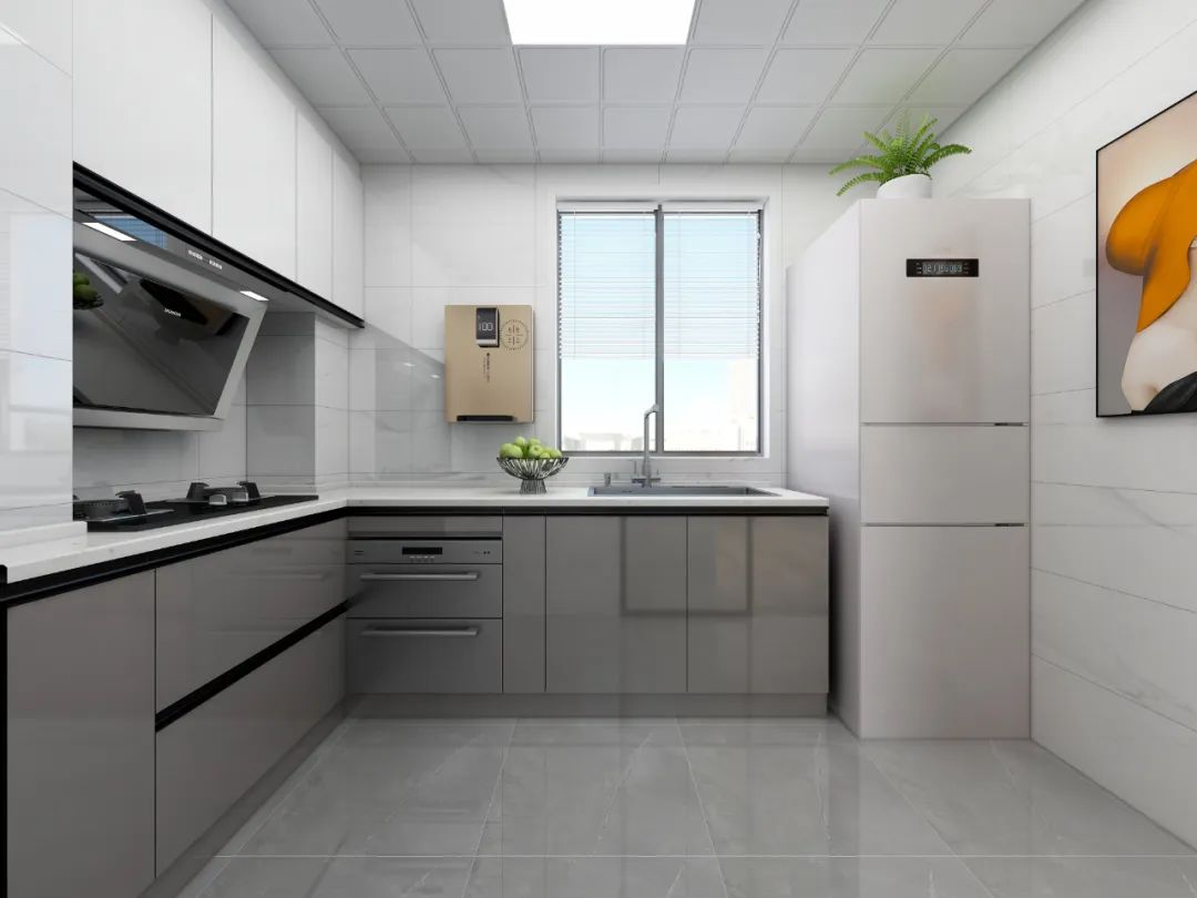由于需要做飯烹飪,廚房里的冰箱、微波爐、烤箱、瓶瓶罐罐……東西還真不少,把它們都收到柜子里去吧,合上柜門,整齊劃一,大氣利落。