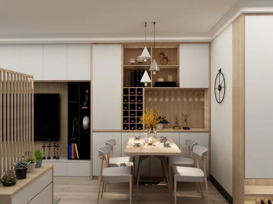 現在很多戶型進門無玄關,入戶就是餐廳,所以設計師大多選擇用一個柜子滿足兩個空間的收納功能。