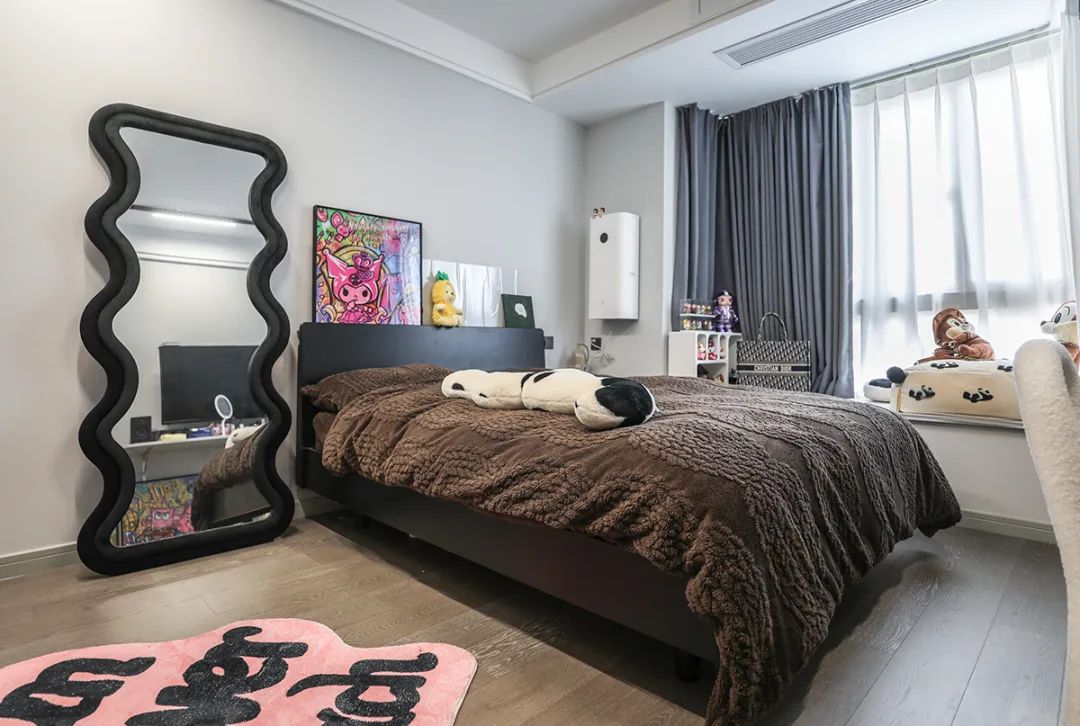 小戶型臥室的空間比較局促,經(jīng)常有朋友在裝修的時(shí)候遇見(jiàn)平開(kāi)門的衣柜撞上了旁邊的床頭柜打不開(kāi)門的情況。所以小戶型最好考慮安裝推拉門衣柜,或是在衣柜上做拐角床頭柜,這樣二者互不干擾,日常使用也會(huì)更加方便省心。