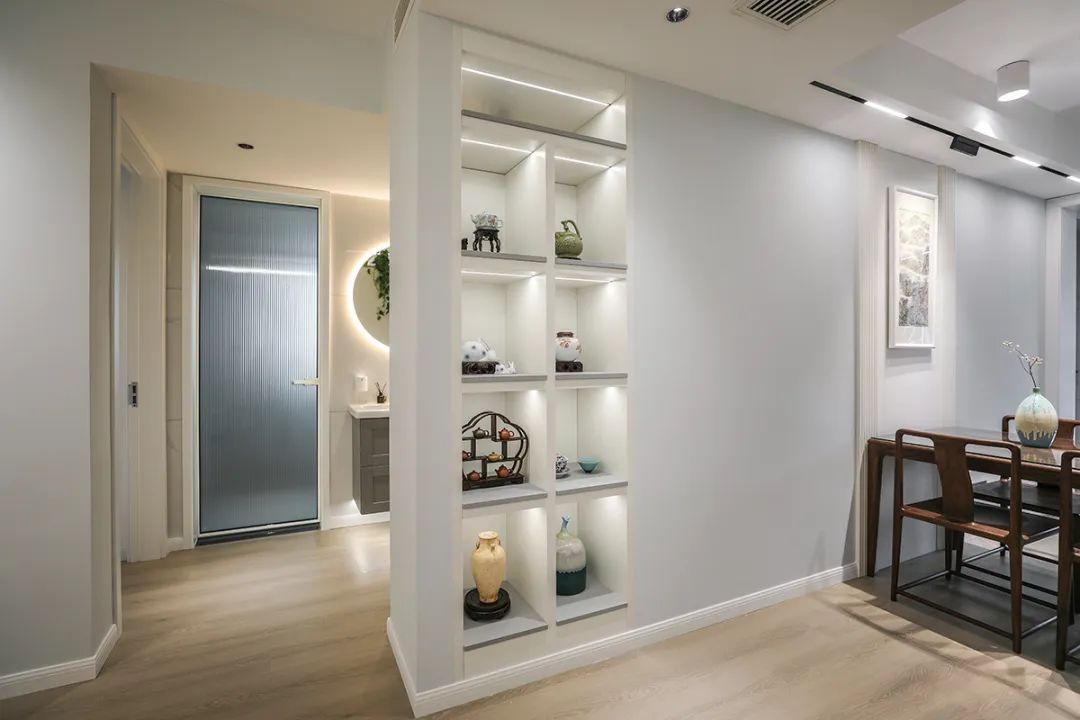 最后,還可以利用一些非隔斷墻的小墻體來(lái)劃分玄關(guān)和客廳的區(qū)域。比如有的戶型中會(huì)用到這種墻體,看上去并不大,但卻能輕松界定玄關(guān)和室內(nèi)的空間。