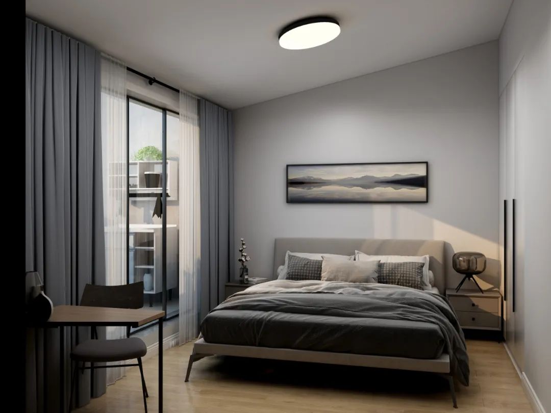 假如是小戶型臥室,床尾處通常空間不大,沒有頂天立地衣柜,可將其安排在床頭柜位置。
