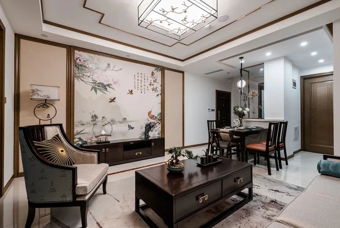 新中式風格的具有濃厚的中國文化氣息,給人一種典雅、高貴的生活格調。新中式風格喜歡運用傳統韻味十足的軟裝。如窗簾、抱枕和掛畫,象征著幸福和吉祥。也時常運用具有代表性的中國傳統文化,如蓮花、富貴花、云紋、龍鳳紋等,象征著美滿富貴