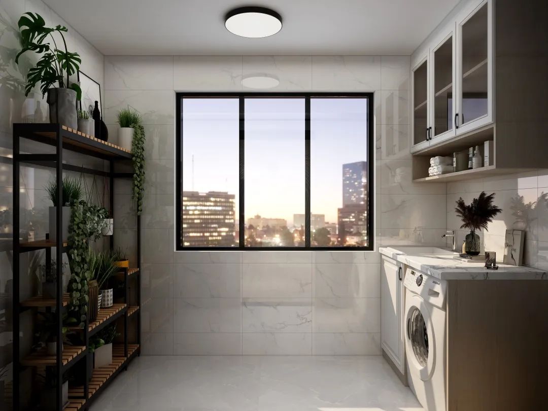 地面采用紋理溫暖的灰色柔光磚。如果你喜歡溫暖的地板,你也可以使用原木色的木地板。不要使用紋理較重的地磚,這會使整個空間凌亂。而且純白的地磚確實可以讓空間變得更有感覺,更驚艷,但是說實話,它缺少一絲溫暖和煙火氣,并不適合所有人。