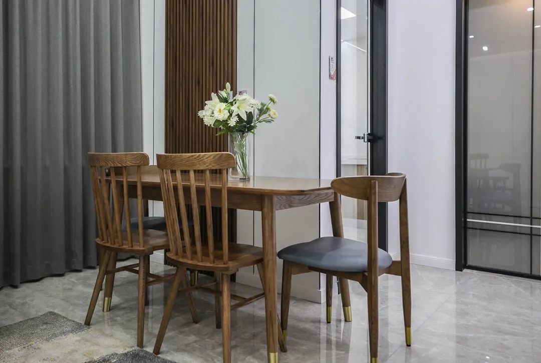 餐廳是二人世界的浪漫之地,色調變化增加了有形的溫暖,實木桌椅讓餐廳別具一格。