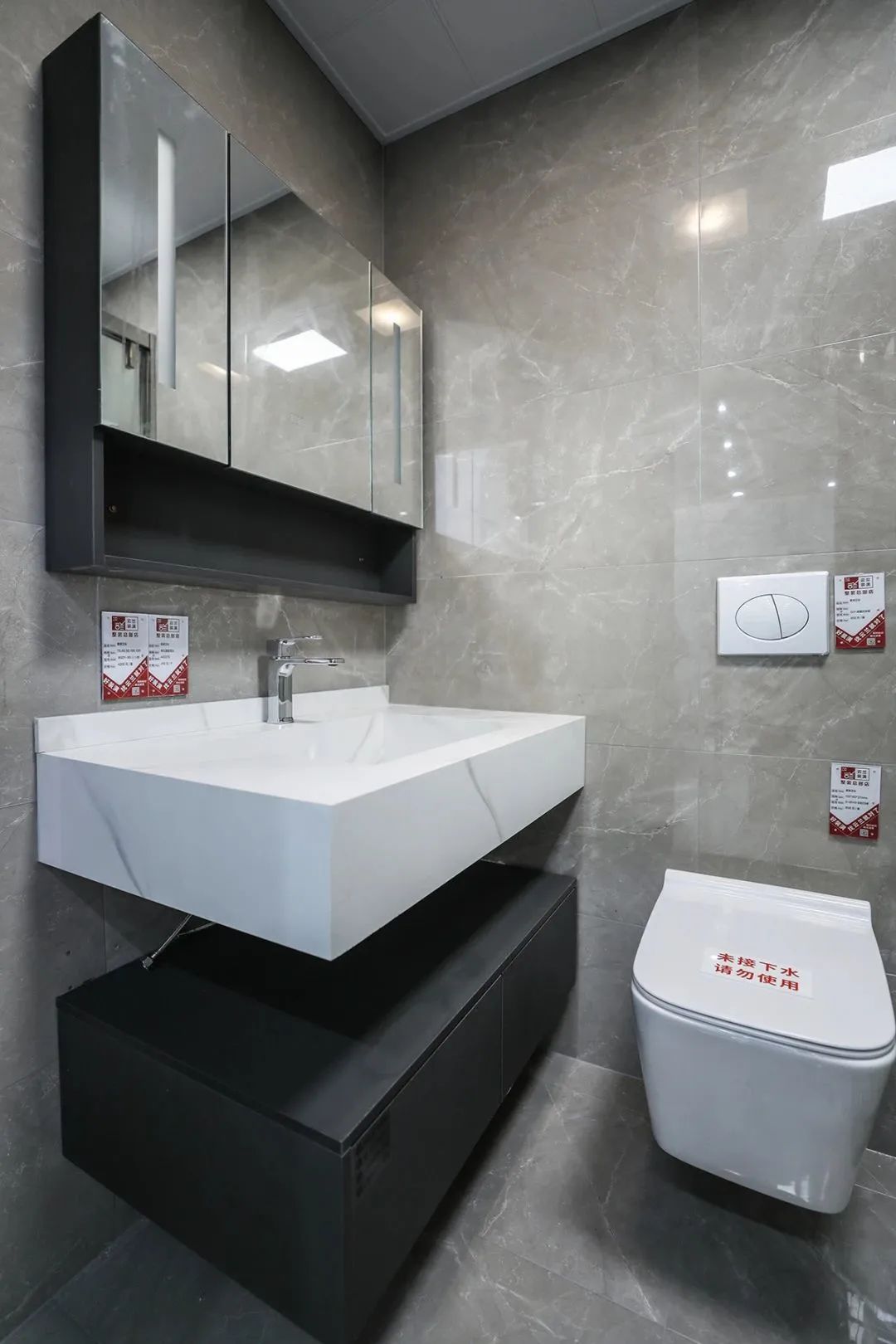 衛生間是最顯生活品質的地方之一,從瓷磚到洗漱臺,灰色、白色、黑色,非常安靜美好。