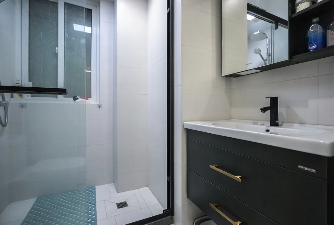 考慮到衛生間的小型物品較多,所以在衛生間沒有做太過復雜的裝飾。瓷磚選用淺色調的,因為衛生間是個大面積場合,太耀眼的顏色就會顯得陰暗潮濕。