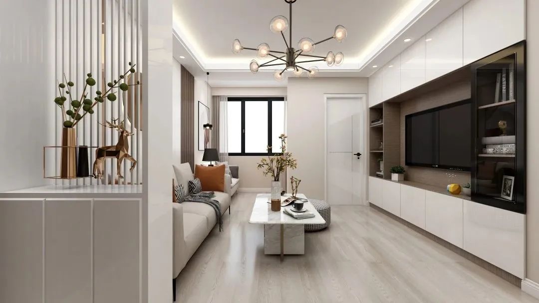 設計說明:通過運用簡單的線條和極簡的家具裝飾空間,使空間散發出干凈利落的氣息。在色彩搭配上,主要運用牙白、明亮灰等中性色調,營造出簡約而舒適的氛圍。在家具選擇上,以簡約造型的沙發、餐桌等為主,搭配上精致的陶瓷裝飾品,提升整體質感。