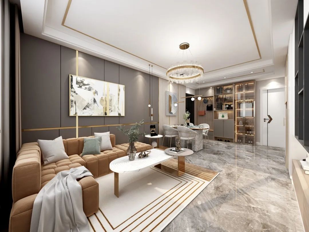 設計說明:通過華麗的裝飾線條和精致的細節處理,打造獨具氣質的空間。在色彩搭配上,主要運用米白色、淺灰等為主色調,營造出高貴而典雅的氛圍。在家具選擇上,以設計感較強的家具為主,搭配上華麗的窗簾和地毯,提升整體奢華感。