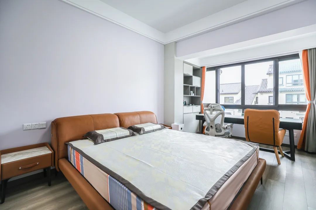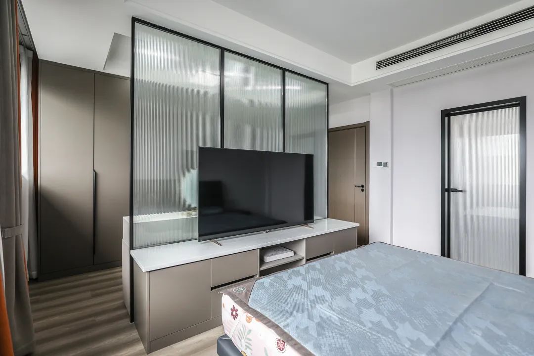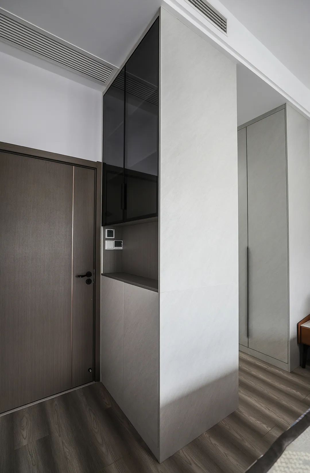 巧妙地運用了各種元素,臥室進門設計了收納柜,充分考慮了居住的舒適性和實用性。每一個細節的精心設計,能讓人在其中感受到一種寧靜與和諧,仿佛置身于一個充滿靈感與夢幻的世界之中。