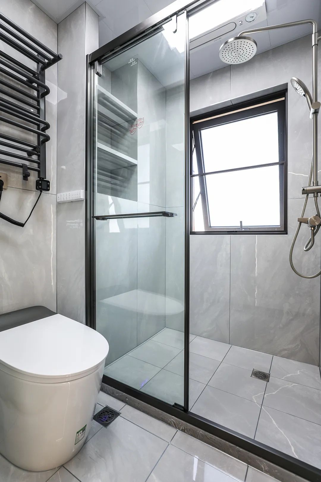 主衛(wèi)空間寬敞,只放置了一個(gè)馬桶和一個(gè)洗手臺(tái),沒有單獨(dú)的淋浴區(qū)域,這樣可以讓空間看起來更加寬敞。灰色的窗戶搭配槍灰色的毛巾架和龍頭,讓整個(gè)空間看起來諧調(diào)統(tǒng)一。