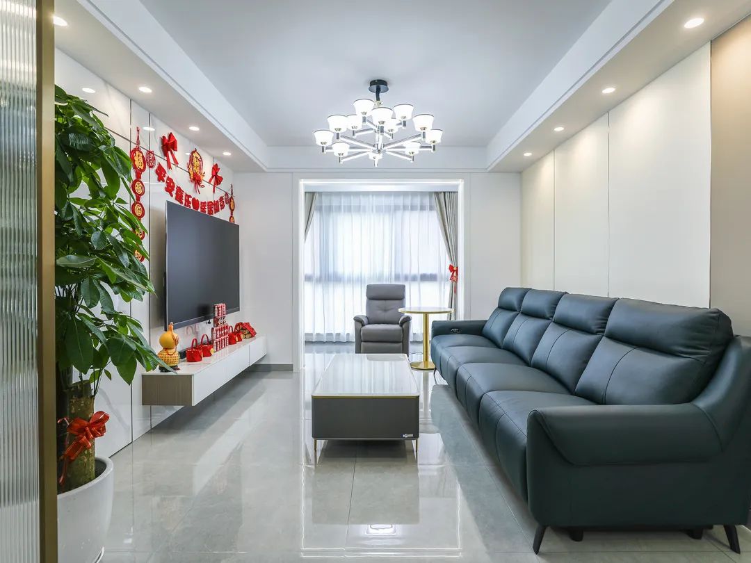 這套房是一個三口之家,主人熱情好客,家中常常有客人造訪,偶爾還會有遠方的父母前來探望,因此,增加儲物功能很有必要。為了裝修的大氣、整潔,選擇了現代輕奢風的裝修風格。這套房子為三室二廳二衛,主臥由主人居住,次臥則是由正在上小學的兒子居住,另外一間客房則隨時歡迎父母和客人的到來。