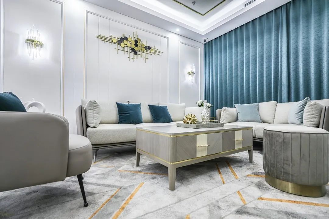 設(shè)計(jì)說明:該設(shè)計(jì)采用現(xiàn)代輕奢風(fēng)格,注重簡(jiǎn)潔、精致和高雅的氛圍。窗簾采用了質(zhì)感細(xì)膩,觸感柔軟的布料制作,強(qiáng)調(diào)了家具的實(shí)用性和舒適性。沙發(fā)組合外包材質(zhì)采用了灰色和米色的布料制作,顏色與窗簾的色調(diào)相呼應(yīng)。同時(shí),空間采用的布料極具透氣性和舒適性,可為業(yè)主一家提供了一個(gè)舒適的居住環(huán)境。
