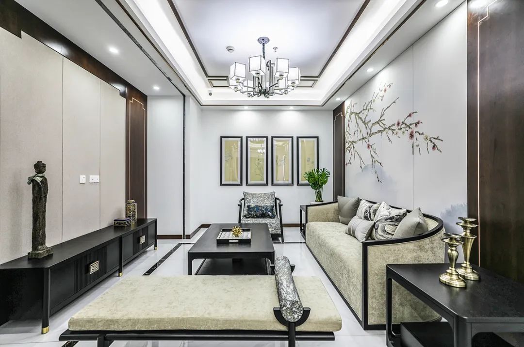 設計說明:在簡約中式風格中,注重傳統與現代元素的融合。全屋定制的家居設計體現了這種風格特點,既保留了中式的對稱美感和文化元素,又采用了簡約的線條和色彩。這種設計既彰顯了中式的優雅,又展現了現代簡約的時尚感。