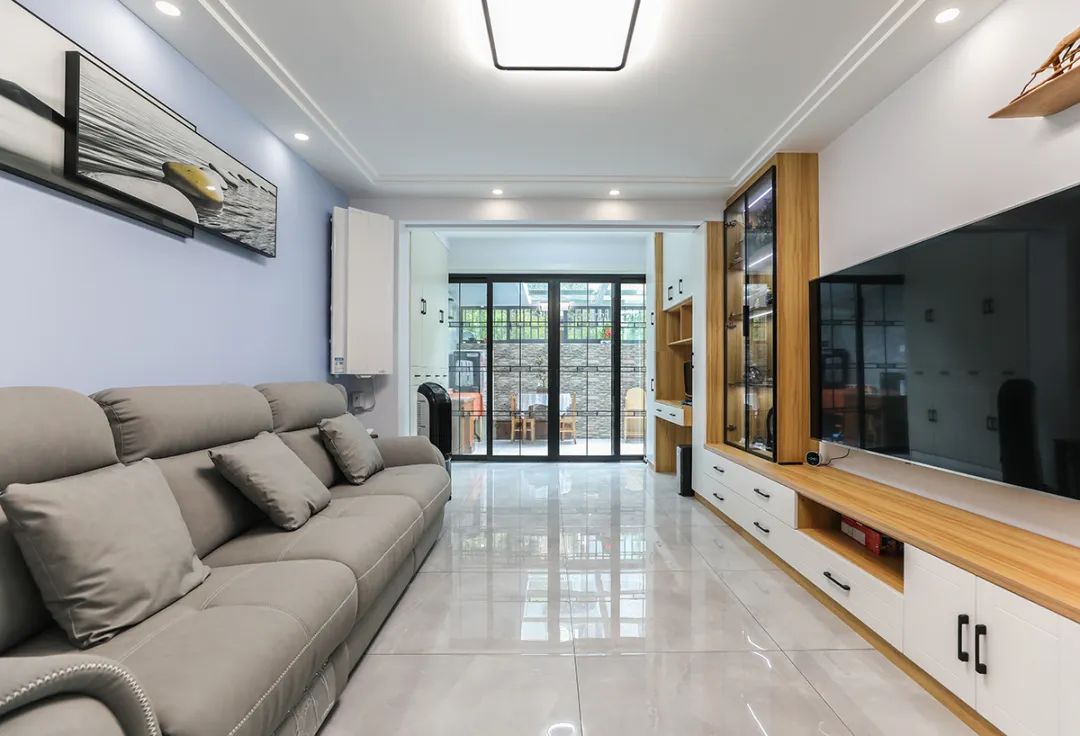 現代簡約裝修是當下最流行的設計風格,因為其更符合我們現在的生活方式,其使用的裝修材料也多為當下的工藝制作,日后我們日常添置一些用品也不會違和。這套房子是典型的現代簡約裝修風格,單邊扶手沙發、巖板臺面、對比色高腳椅更強化的現代性。而創意燈具的設計,把客廳區域打造成了類似于舞臺空間,更符合當下年輕人或年輕態的心理需求。