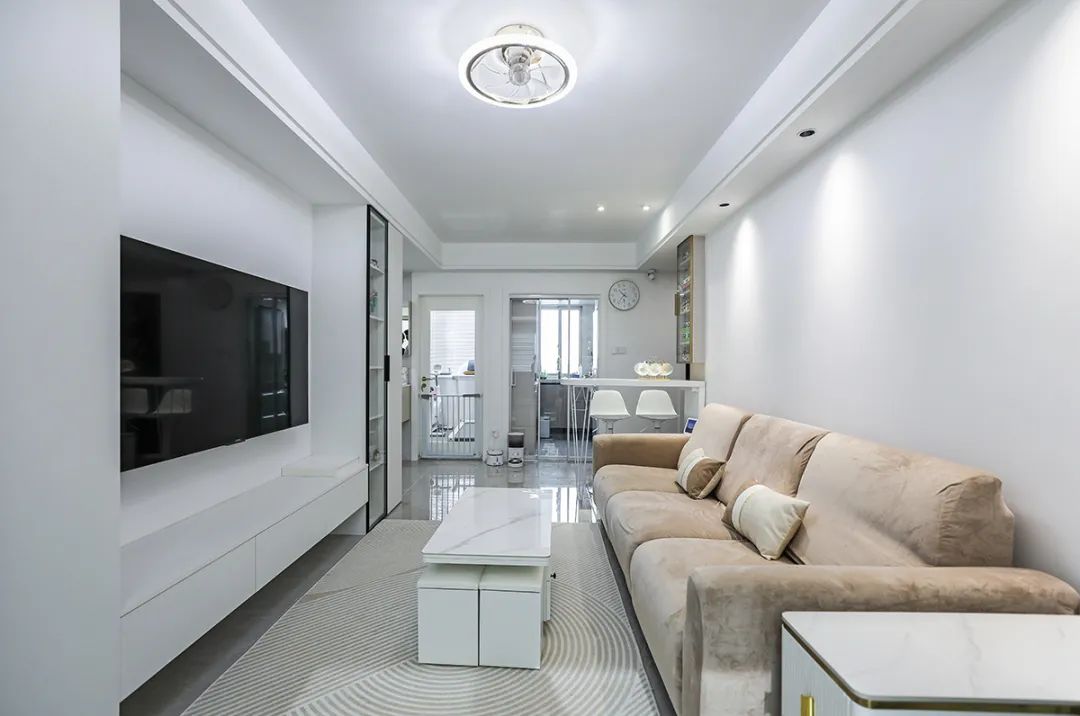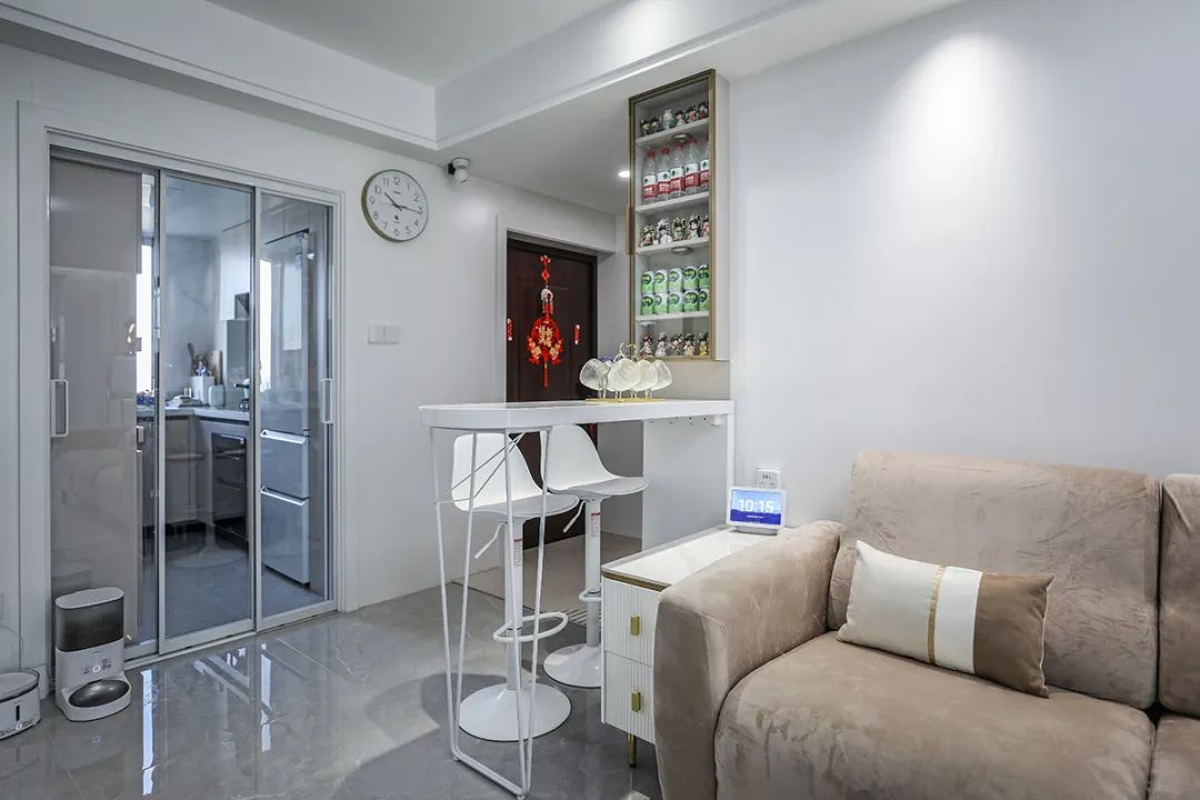 這套婚房實(shí)際面積僅為59平米,我們在打造必需功能空間時,另做出吧臺、獨(dú)立健身房、寵物區(qū)、干濕分離衛(wèi)生間,將空間直接翻倍。如果你也喜歡這種現(xiàn)代輕奢風(fēng)格,請聯(lián)系我們。我們會用設(shè)計技巧和裝修經(jīng)驗(yàn)將花費(fèi)控制在預(yù)算之內(nèi),實(shí)現(xiàn)每一位業(yè)主的家居夢想。