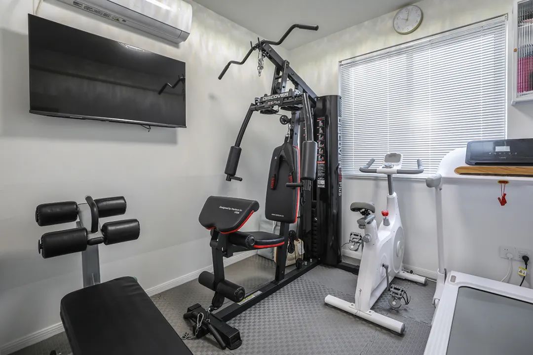 由于房子目前僅為二位新人居住,考慮到他們的健身愛好,我們將次臥室爆改為運(yùn)動健身房。而且健身房開窗視野開闊、樓下風(fēng)景秀美,更加貼合女主人的瑜伽喜好。