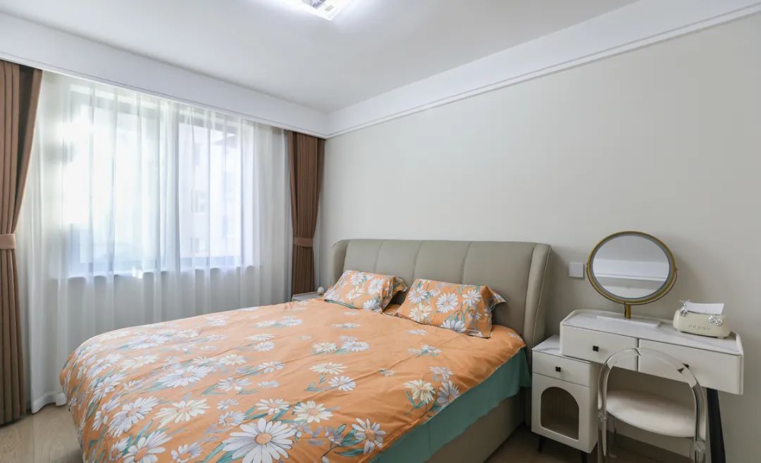 窗簾是臥室中的重要軟裝飾,其材質、款式和顏色對整個臥室的氛圍有很大的影響。