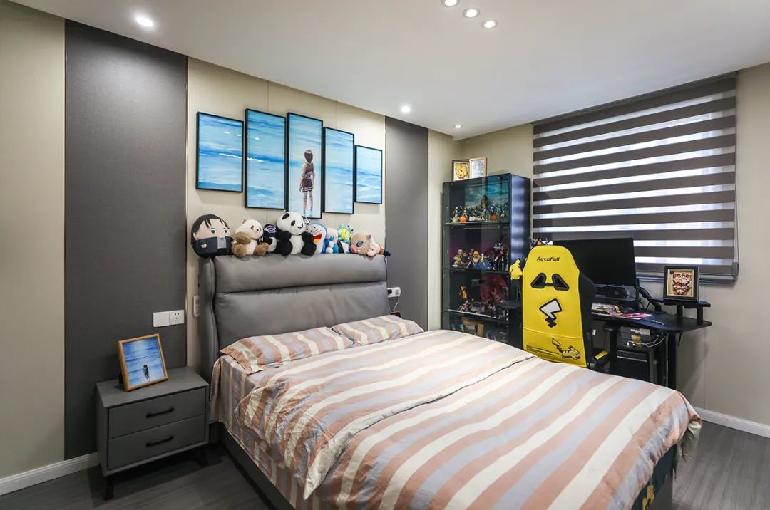 小孩房墻面運用了碰撞的色彩,再加上黃色的電競椅,感十足,妥妥的兒童專屬空間。