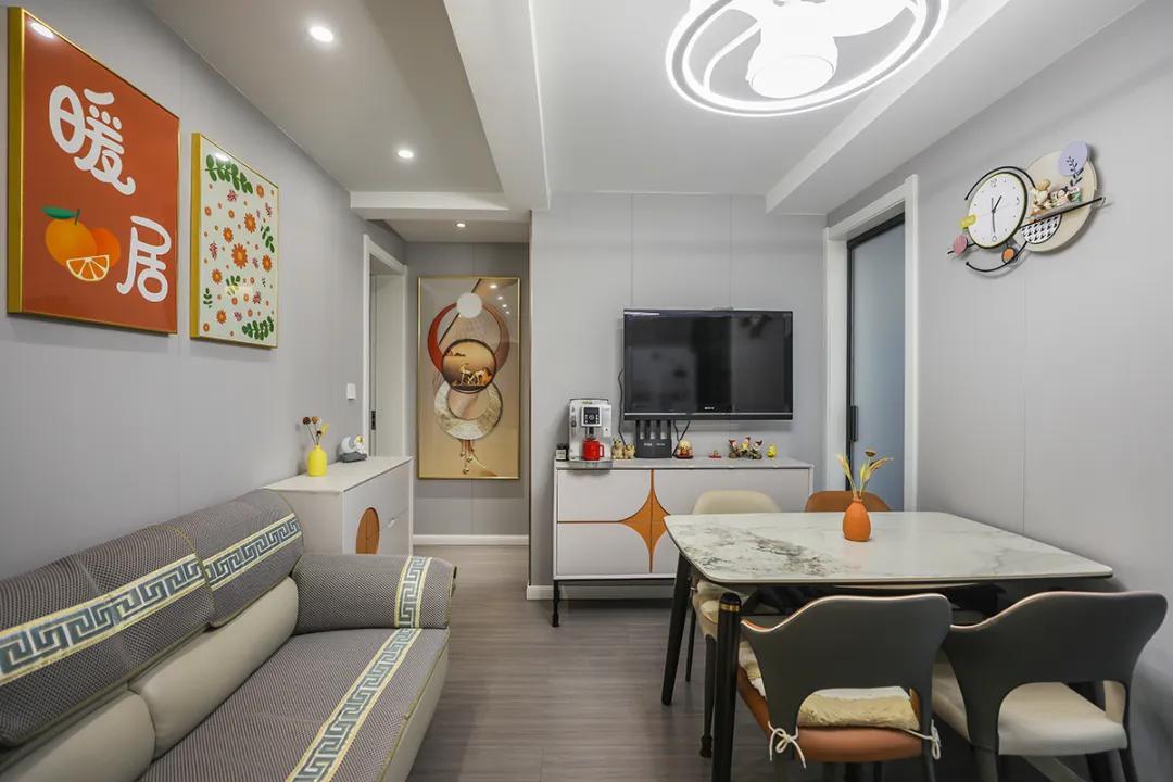 這是套木結構的老房子,我們在開始翻新之前,對房屋進行全面的勘察,發現存在墻頂面不同程度開裂,而且采光比較差。本次裝修以簡約風格為主,墻面采用集成墻面替代乳膠漆。頂面采用整體石膏板吊頂,解決墻頂面開裂的問題。廚房采用雙玻璃移門,增加客廳的通透感。