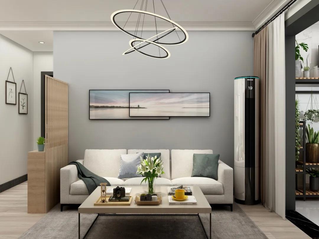 此現代客廳采用淺灰色墻面設計,與白色沙發與木質家具相映成趣,簡約而不失溫馨。自然風景畫作增添了一抹寧靜與清涼,而落地窗則讓自然光灑滿空間,通透感倍增。淺色墻面不僅視覺上帶來涼爽,還提升了整體家居的明亮度與舒適度,是現代簡約風格中的清涼佳作,為居者打造了一個既美觀又實用的夏日避暑勝地。