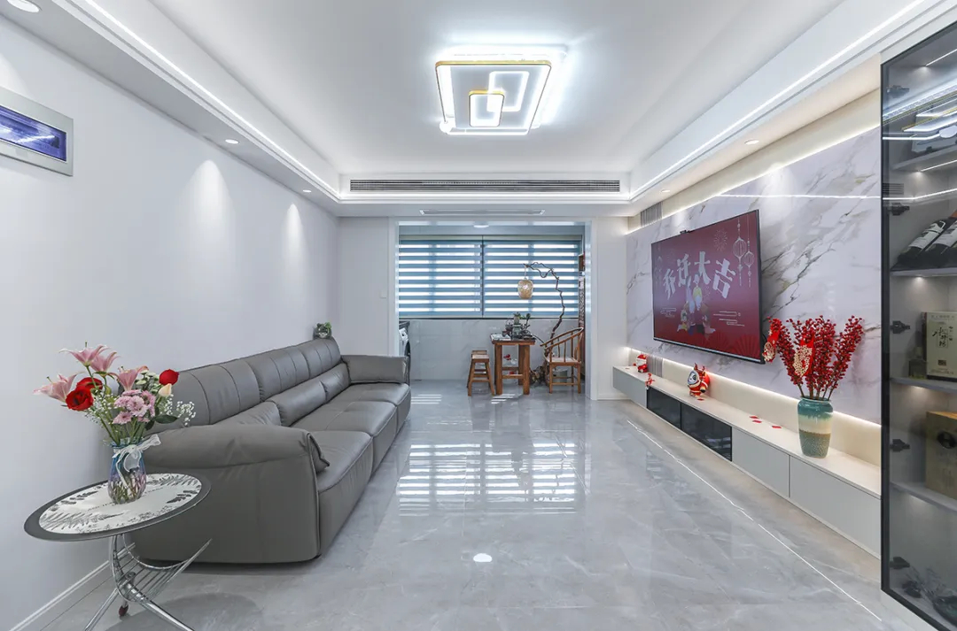 這間寬敞的居室為一對公司高層管理人員夫婦量身打造,客廳墻面以白色乳膠漆為主,電視墻采用原木色木飾面,營造出溫馨而明亮的氛圍。巧妙地布置了一組貴妃沙發(fā),既提供了舒適的休息區(qū),又增添了中式的雅致。整體設計簡潔而不失層次,既滿足了現(xiàn)代生活的舒適需求,又體現(xiàn)了主人對傳統(tǒng)文化的尊重與繼承。