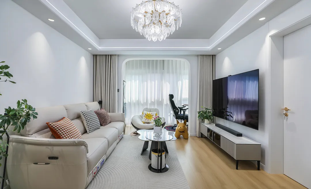 在這間溫馨舒適的婚房中,我們為一對年輕夫妻——一位建筑企業評估員和一位幼兒園老師——精心打造了一個充滿愛意的家。女主人對養貓的熱愛,讓整個空間的設計更加柔和、時尚,同時不失原木奶油風格的自然之美。次臥則巧妙地設計成了衣帽間,同時兼具辦公和梳妝功能,既實用又充滿創意。