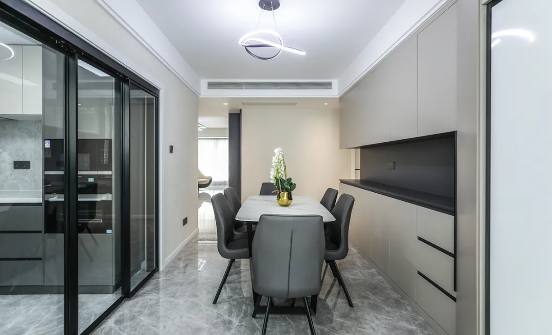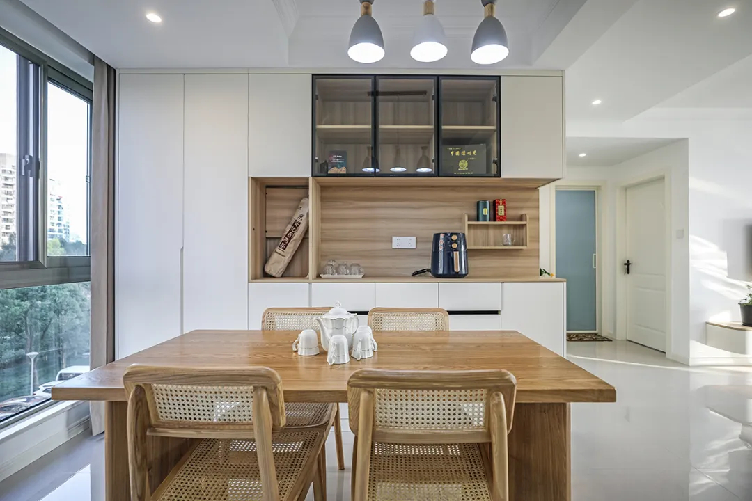 4、餐廳一體化設(shè)計(jì),利用原墻體厚做的裝飾柜增加儲(chǔ)物和裝飾空間......