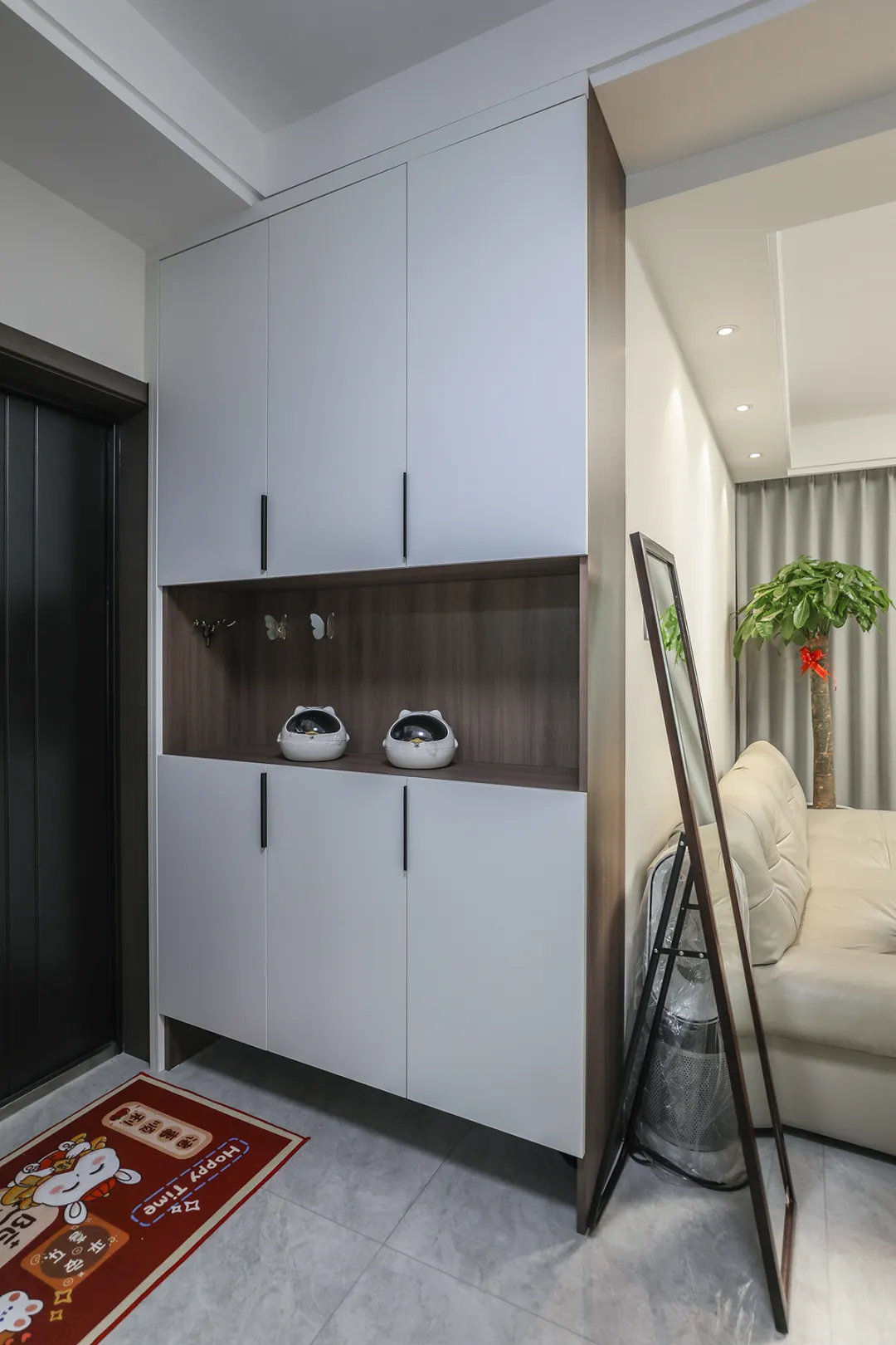 雙眼皮吊頂和滿墻電視柜的設(shè)計(jì),不僅提升了空間感,更彰顯了現(xiàn)代家居的精致與實(shí)用。
