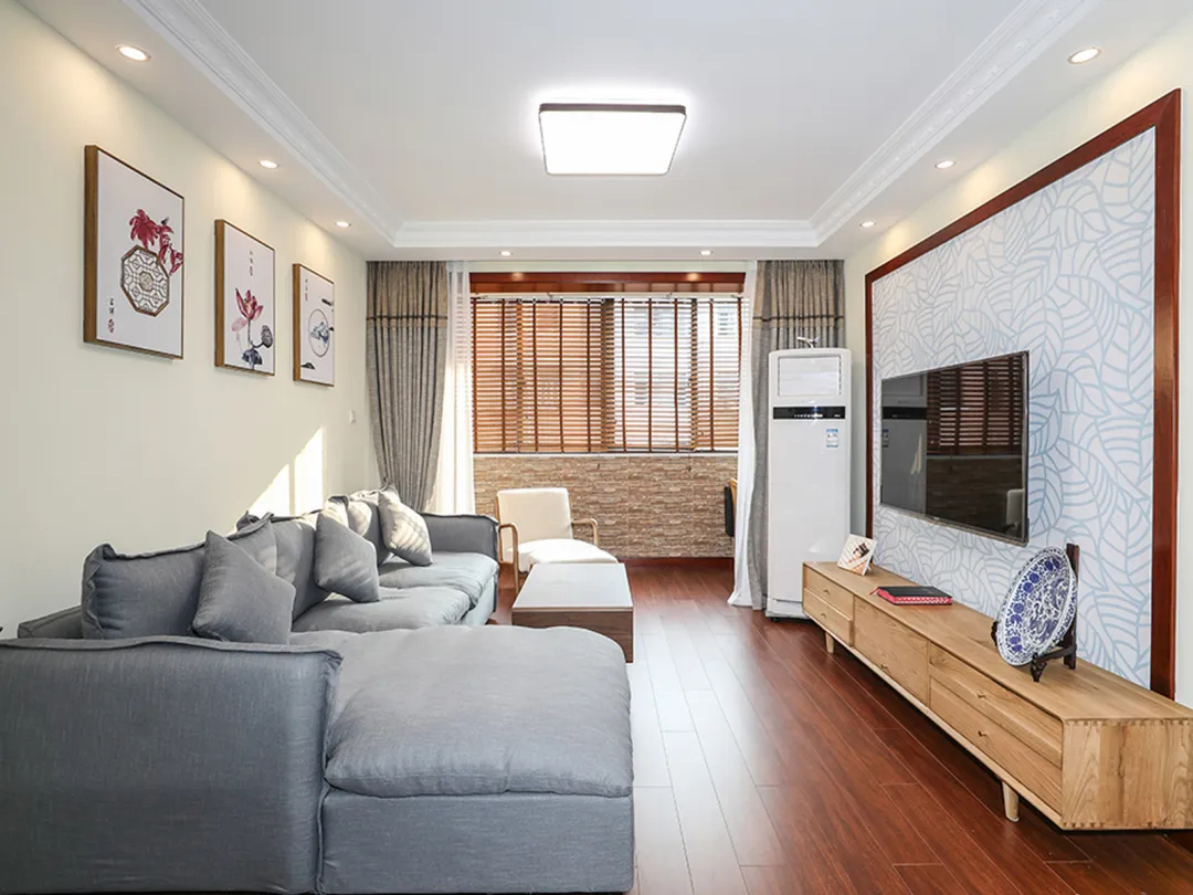 這個客廳案例運用了大量的天然素材和簡潔的線條,營造出一種淡雅而寧靜的氛圍。空間中沒有過多的裝飾,只有一些必要的家電,突出了禪意的精神追求。這種風(fēng)格讓人感到放松和自在,非常適合現(xiàn)代人的生活需求。