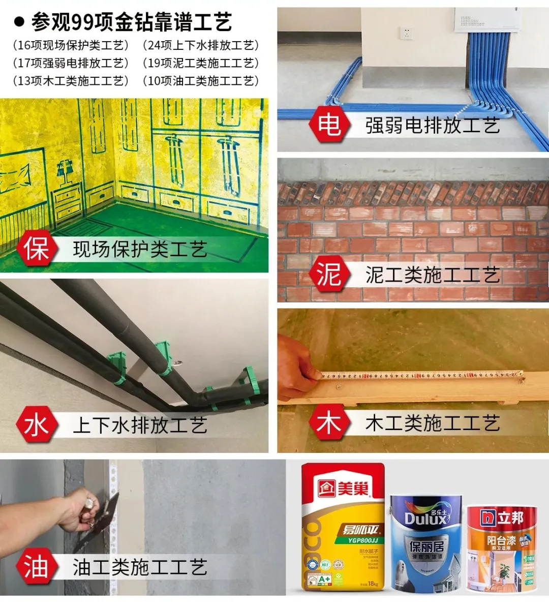 云蘭整裝王擁有300+專業施工隊伍,堅決不搞發包和轉包,確保施工質量的高標準。云蘭整裝王的金鉆99項歐標施工工藝,覆蓋了從抗滲漏到抗衰老的全方位技術,為客戶的新家提供全方位的質量保證。