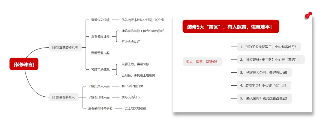 通過對每一項管理細節的判斷,我們就能確定該裝修是否靠譜了。經過我的分析,是不是有那么一點道理?要知道,機構是由人組成的,人在管理框架下做事,所以管理決定了人的“人品”,也決定機構的“德行”。而我們作為裝修業主,只要根據生活經驗去判斷這些管理細節是否靠譜,就能有效避坑、選定靠譜裝修。