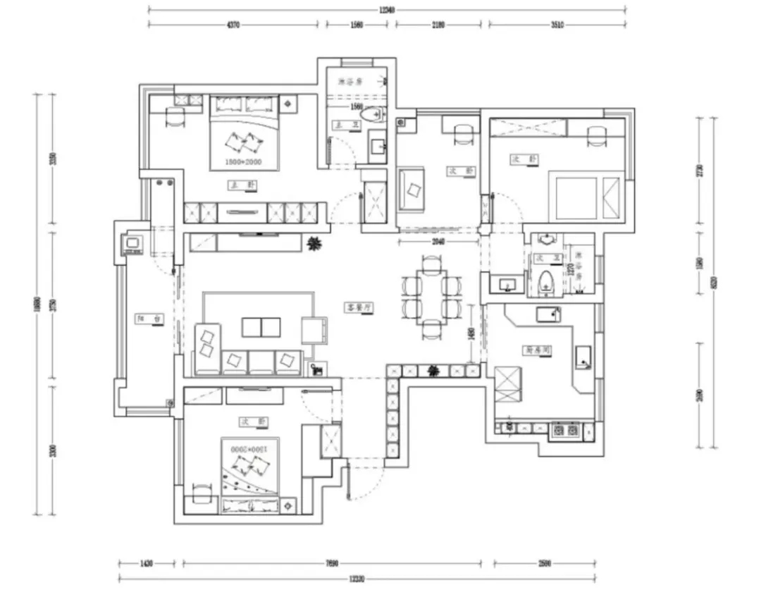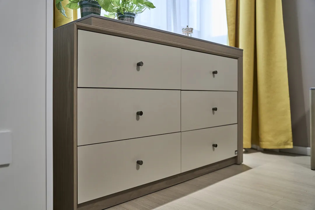 2、臥室和餐廳定制整面墻柜,增加儲物功能,同時保持空間的美觀和實用性;