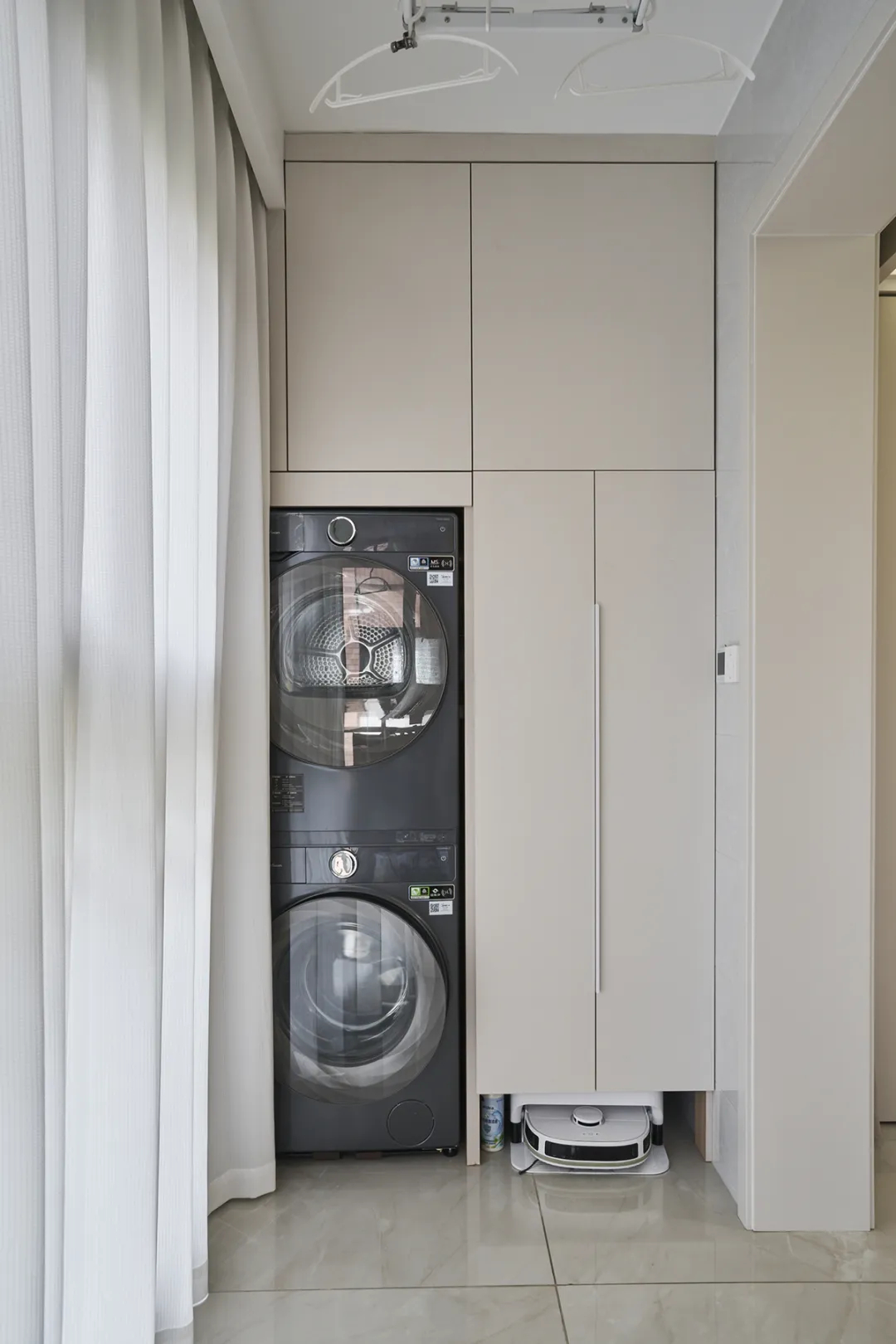 該套房裝修風格為現代簡約,我們以簡潔、干練的設計語言來提升整體的美觀度,同時盡量減少對空間的占用,確保在增設功能區域的同時,依然保持空間的寬敞度。