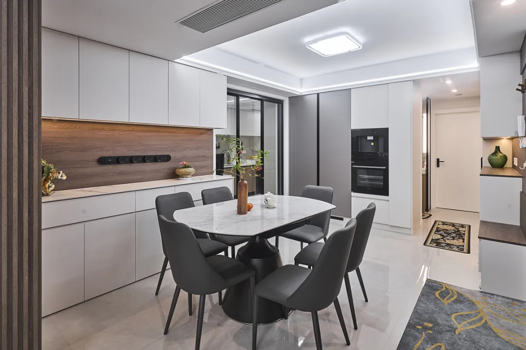 1、以現代極簡風格為基礎,增加原木風格的裝飾,滿足業主的藝術審美需求;