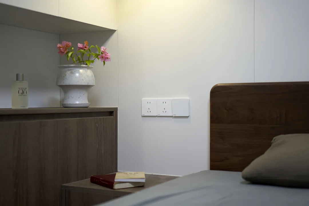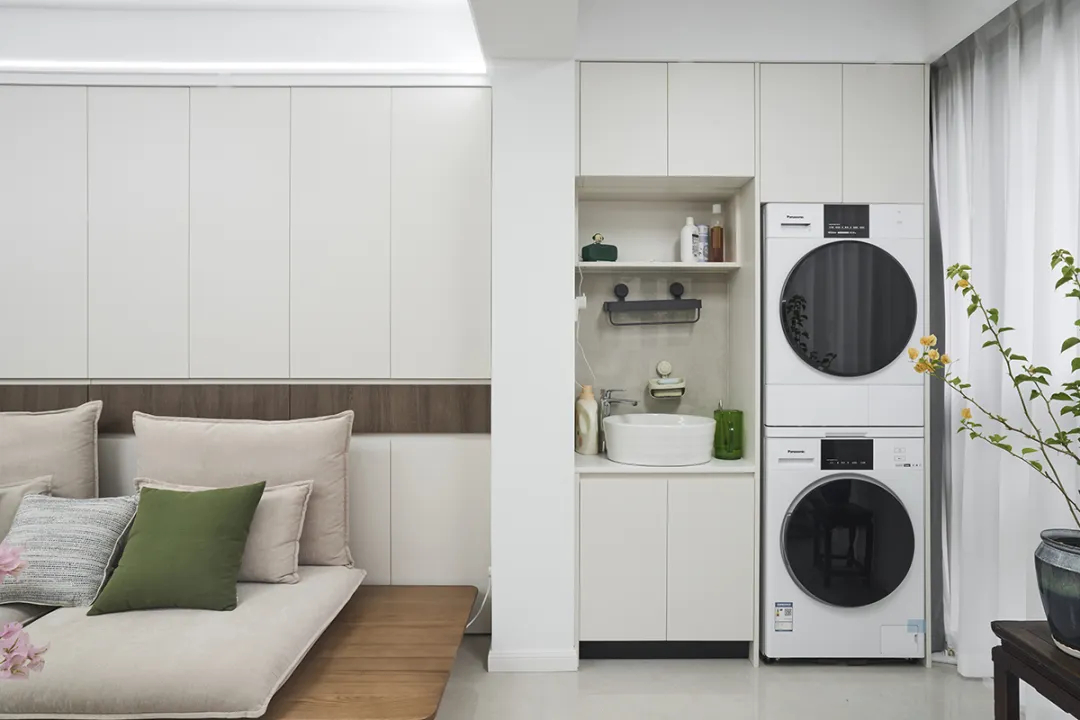 2、通過定制家具和巧妙設計,如臥室的懸空柜體、廚房的白色吊柜等,提升了空間的儲物功能;