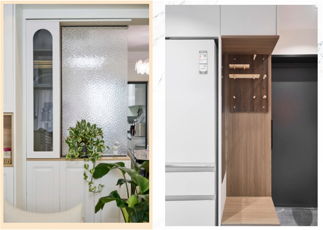 以玄關(guān)為例,鞋柜是必不可少的,但上柜可能并不實(shí)用。由于玄關(guān)位置的特殊性,上柜的使用頻率非常低。相比之下,設(shè)計(jì)一個(gè)長(zhǎng)條形的衣柜可能更適合,既能滿足收納需求,又能避免空間浪費(fèi)。或者,干脆舍棄高柜,用長(zhǎng)虹玻璃代替,引入自然光線,讓玄關(guān)變得更加明亮通透,從而營(yíng)造出一種輕奢而舒適的氛圍。