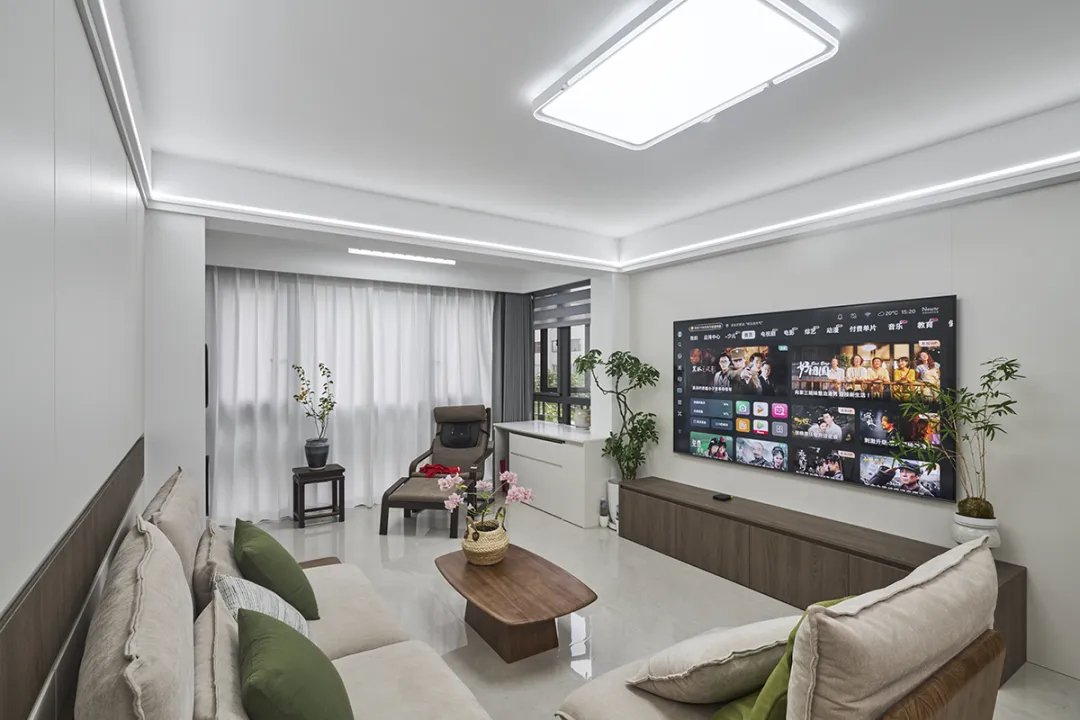 魯班路277弄:這套房子約100平米,南北通透,采光極佳。在設計上,我們以現代極簡風格為基調,融入原木風格裝飾,契合業主的審美。同時,借助定制家具與巧妙設計,如臥室的懸空柜體、廚房的白色吊柜等,不僅提升了空間的儲物功能,更增添了自然與簡約的氛圍,讓整個家在初夏的綠意中,展現出清新、實用的現代美感。