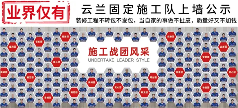 業界僅有:云蘭固定承攬施工隊上墻公示,裝修工程不轉包不發包,當自家事做不扯皮,質量好有不加錢!讓您的設計方案精準落地!