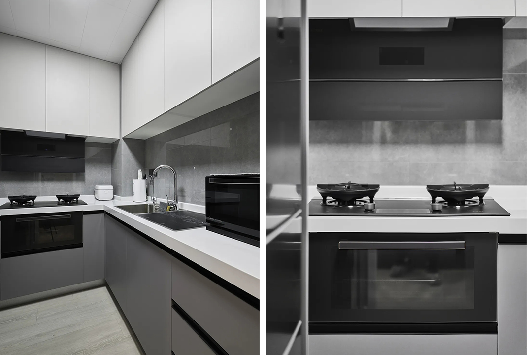 房面積為5平方米,采用了L型櫥柜布局,搭配方太的集成烹飪中心和水槽洗碗機(jī),不僅滿足了業(yè)主廚房的所有需求,還使廚房空間得到了充分利用,讓烹飪變得更加輕松便捷。