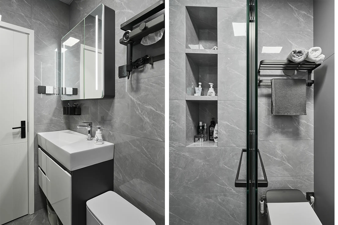 4、衛(wèi)生間做干濕分離,墻面設(shè)置壁龕,空間最大化利用,提升使用體驗......