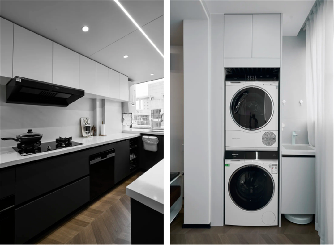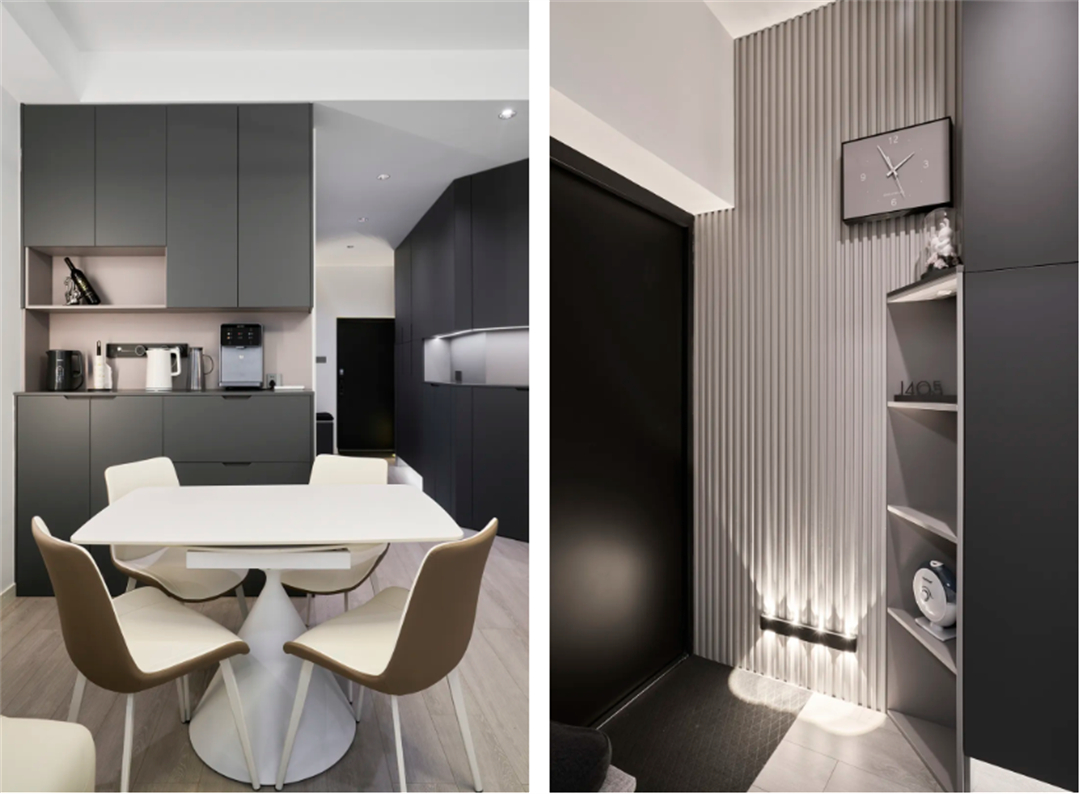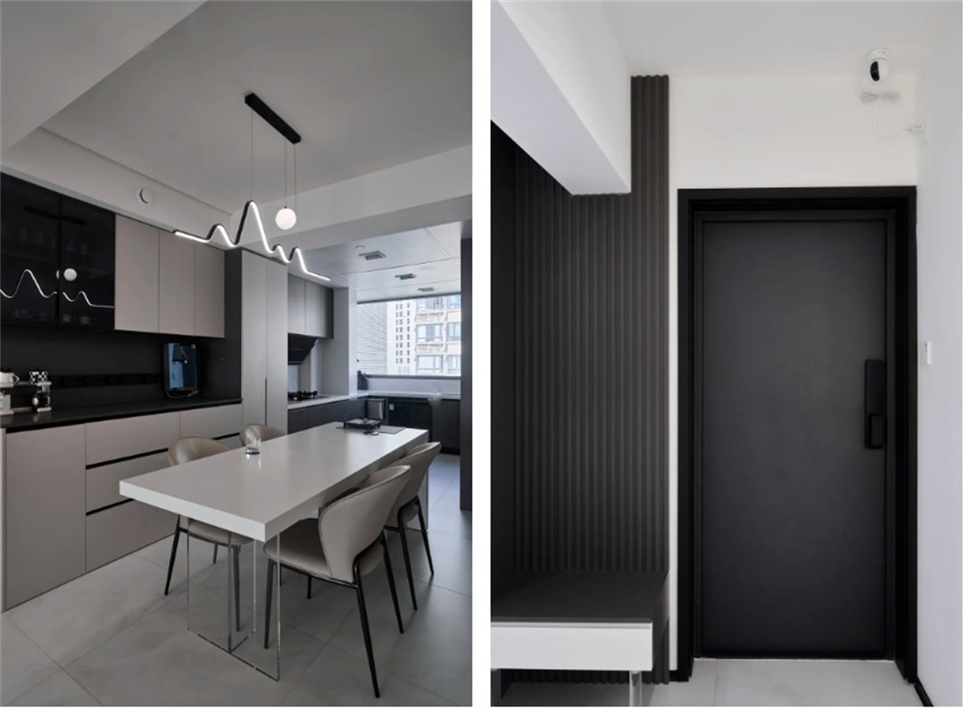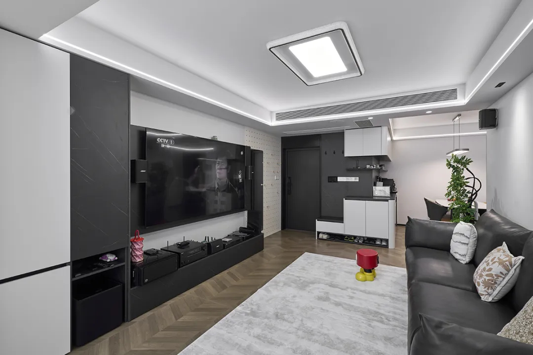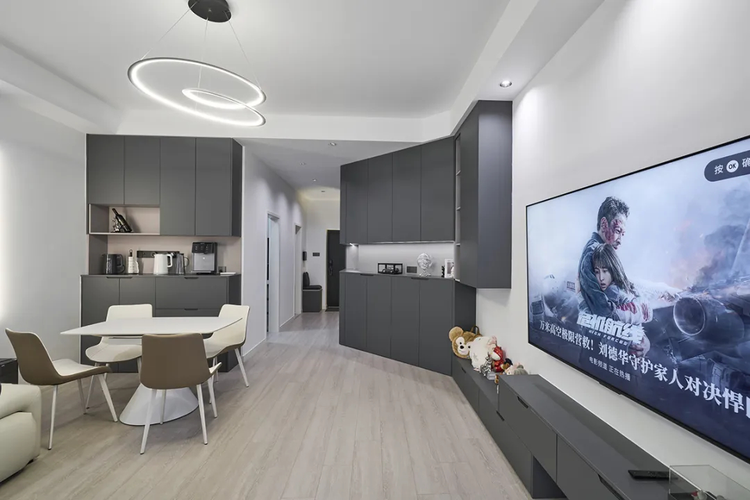 陜西北路1789弄:本套房業主長期在國外生活,這次回國裝修房子。他希望新家功能實用,還能有點個性,既適合單身生活,又能當婚房使用。圖片為了滿足業主的需求,我們采用現代黑白灰風格作為基底,對每個空間進行精心規劃設計,并在材料上注重環保和品質,通過兩個多月的匠心施工終于完美交付。