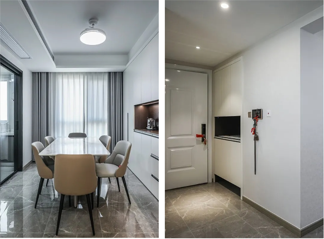 靖宇東路55弄:該套房位于楊浦區靖宇東路55弄,是一套113平方米的平層,業主偏愛極簡主義的純粹和現代感,希望我們能夠打造出一個既現代又舒適的居住空間。設計師通過解構現代設計中的理性基因與感性溫度,以理性克制的灰調進行裝飾,在完成凈化視覺冗余的同時,構建起功能與美學兼具的空間。