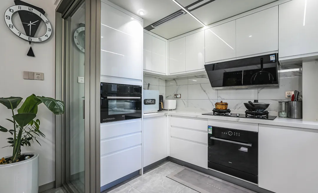 進(jìn)門廚房又小又暗?砸掉非承重墻,改造成開放式廚房,空間瞬間變大。加個(gè)島臺(tái),不僅分隔空間,還能增加收納,讓廚房更實(shí)用。