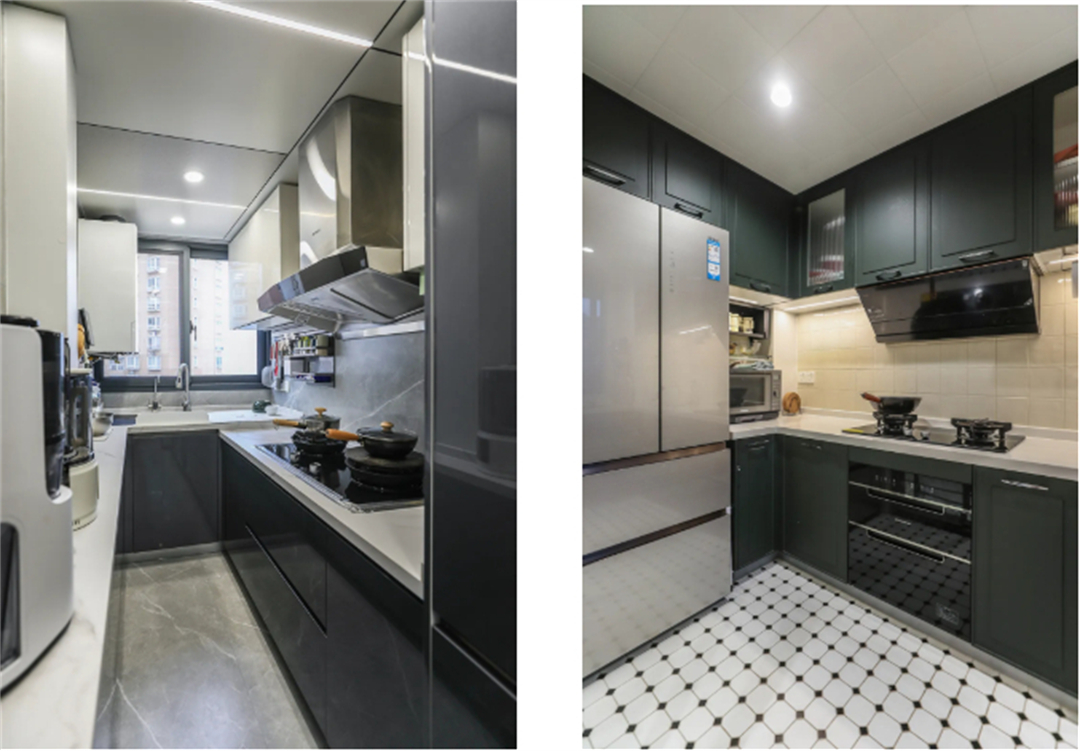 廚房墻面經常會有油煙和水汽,所以墻面磚要選光滑的亮面磚或釉面磚,這樣擦起來輕松又方便。小白磚和馬賽克雖然看起來很美觀,但磚縫太多,清潔起來非常麻煩,很容易讓磚縫里積累污垢,擦到讓人崩潰。
