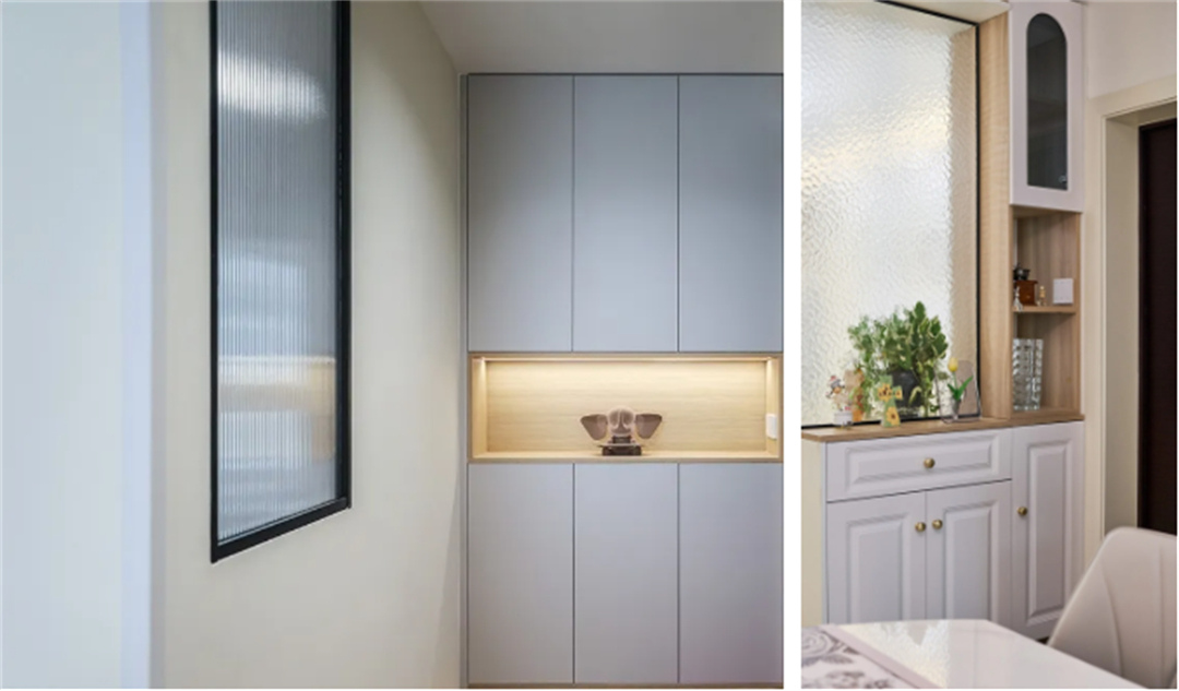 廚房和衛(wèi)生間往往因?yàn)楣δ苄枨螅皯裘娣e不會(huì)太大。這時(shí)候,選擇水紋玻璃就非常合適了。水紋玻璃能夠透光但不透人影,就像自帶了一層柔光濾鏡,讓光線柔和地進(jìn)入室內(nèi),還能保護(hù)隱私。而且,水紋玻璃的磨砂款更好打理,不會(huì)像普通玻璃那樣容易留下污漬和水印。即使是小窗,也能通過(guò)水紋玻璃將更多的光線引入室內(nèi),讓廚衛(wèi)空間不再昏暗。