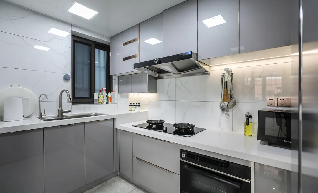 廚房裝修,高低臺面是必備的底線設計,備菜區高度應為身高除以 2 再加 5 厘米,灶臺則再低 8 厘米,這樣操作起來會很舒適;
