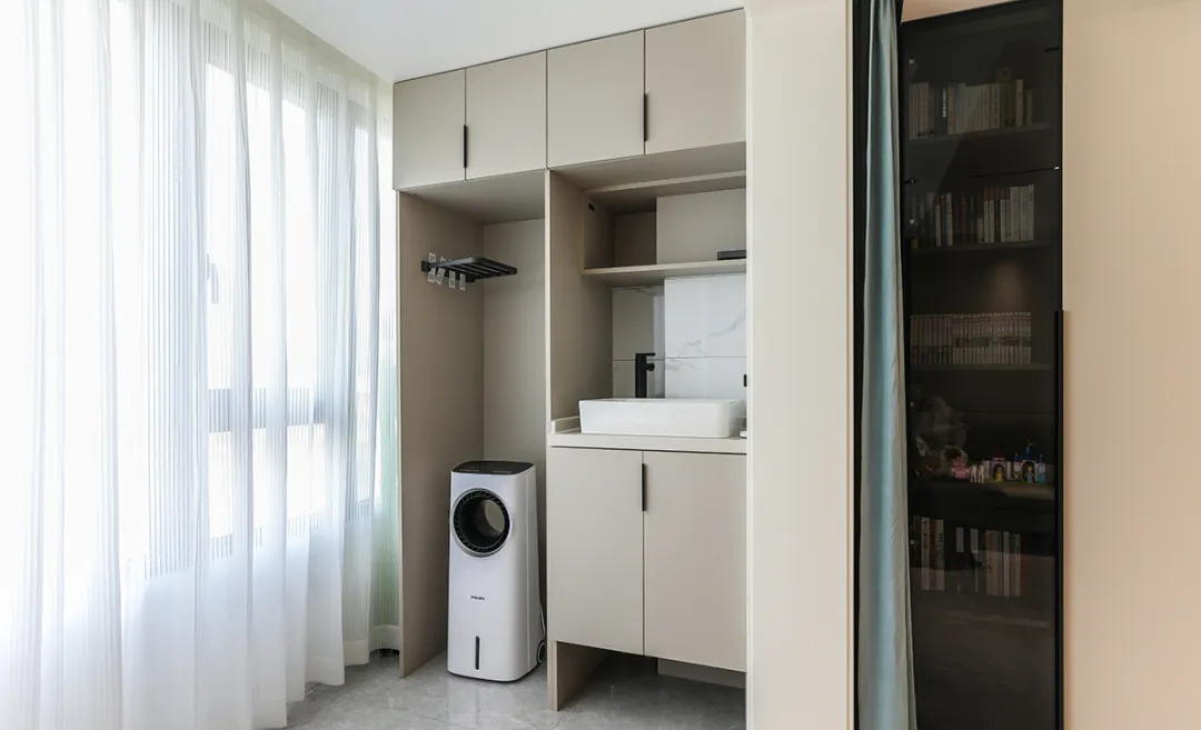 你別笑,這玩意兒真不是擺設。陽臺不是有下水管嗎?包管子的時候,前面那點薄薄的空間,別封死,做成幾層開放格。管子藏住了,順手還多了個放書放雜志的地方。以后躺椅上曬著太陽翻兩頁,那叫一個愜意。